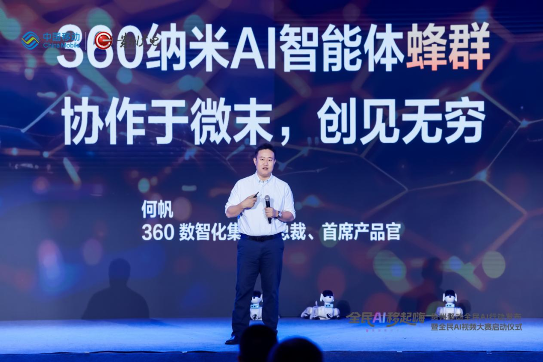 此外,360数智化集团副总裁、首席产品官何帆现身大赛现场,为大家生动讲述360纳米AI智能体蜂群的研发应用情况,呼吁广大群众体验反馈。