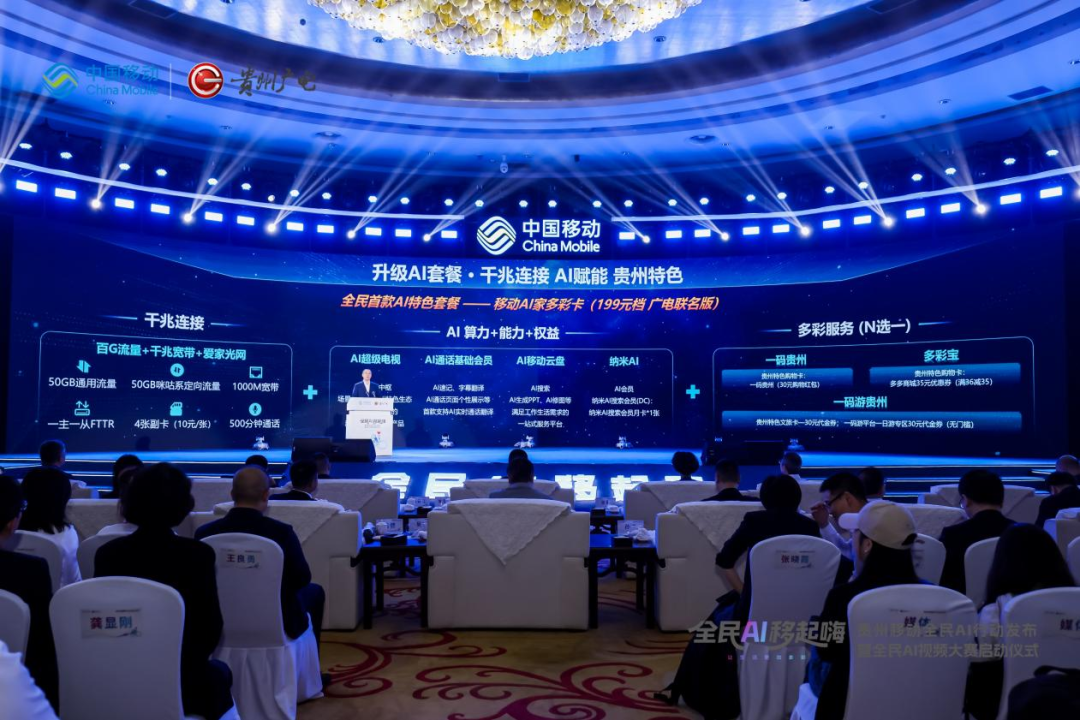 活动现场,中国移动贵州公司携手贵州广电正式推出“全民AI”行动计划,通过“全民学AI”“全民玩AI”“全民创AI”三大核心举措,实现从弥合“数字鸿沟”向弥合“智能鸿沟”跨越。其中,打造十大AI场景、百家AI厅店、千名AI大使、万场AI应用普及“十百千万”工程,推进全民“学”AI;实施AI产品、AI触点、AI套餐三大升级,助力全民“玩”AI;以创意、创业大赛为纽带,激发全民创意,引领全民“创”AI。与众多合作伙伴一同打造全新一代“AI超级电视”、推出全民首款AI特色套餐——移动AI(爱)家多彩卡,让AI渗透生活每个角落。